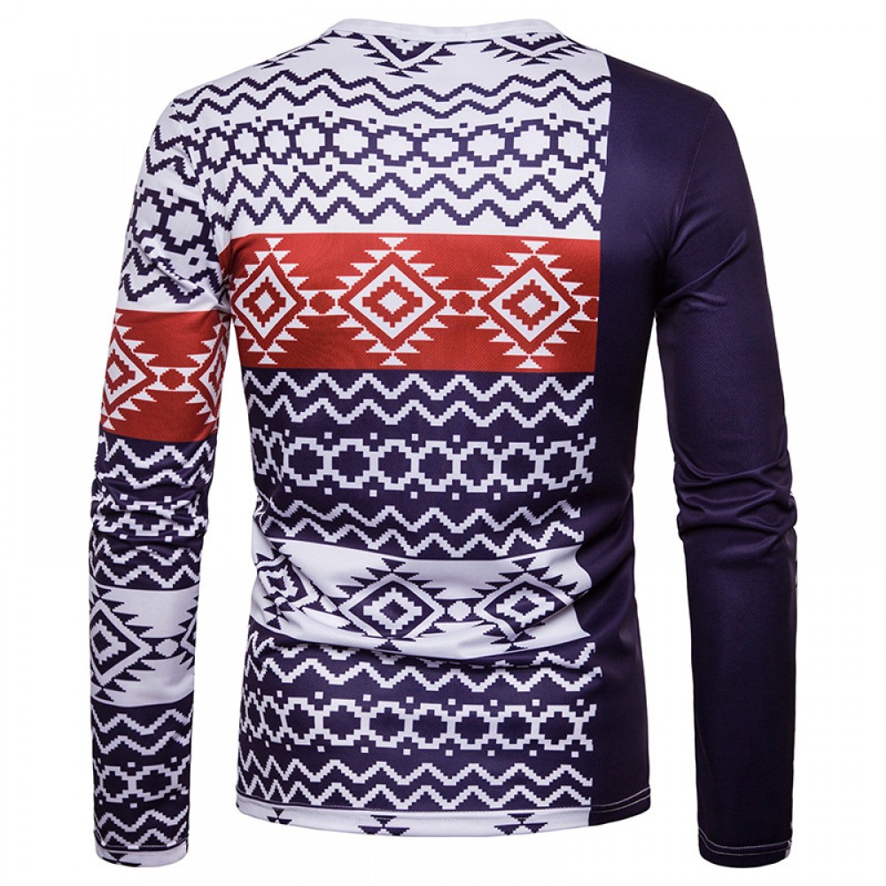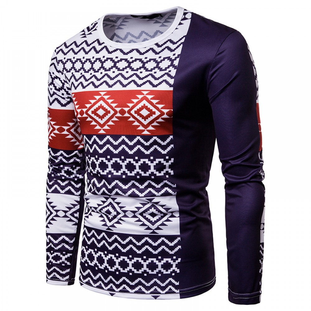 Men's Fashion Wave 3D Digital Printing Round Neck Long Sleeve T-Shirt