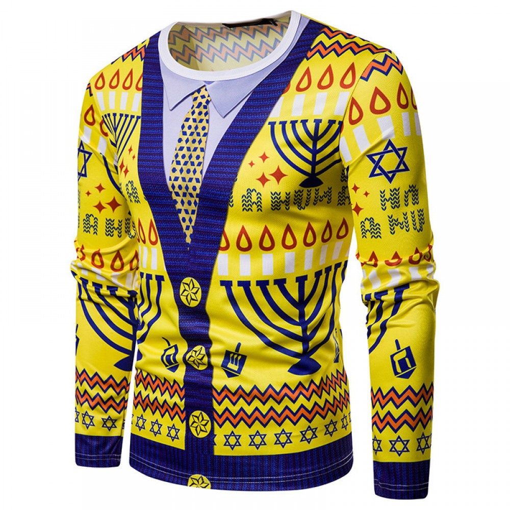 New 3D Personality Printing Fashion Men's Christmas Long Sleeve T-Shirt