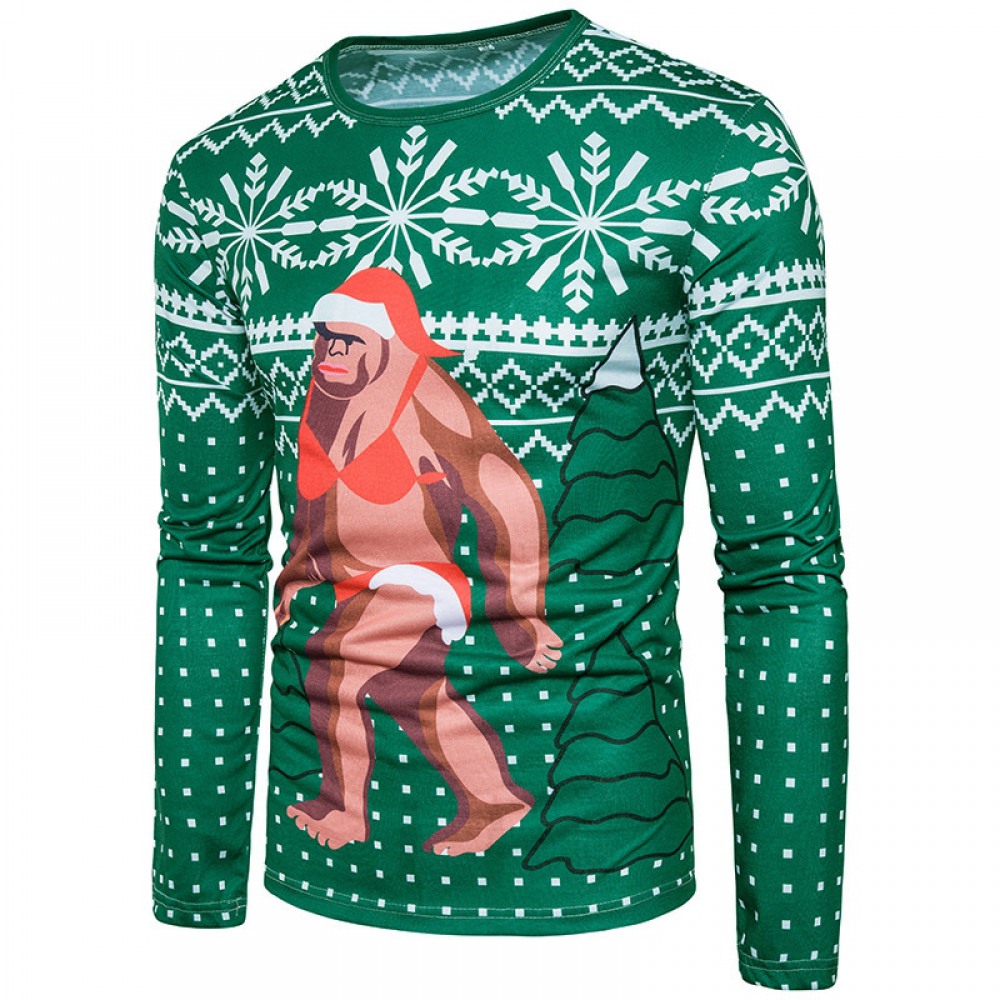 New 3D Personality Printing Fashion Men's Christmas Long-Sleeved T-Shirt