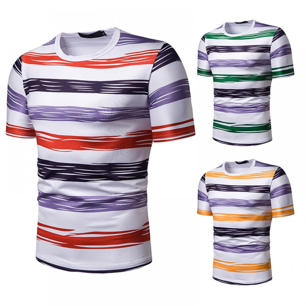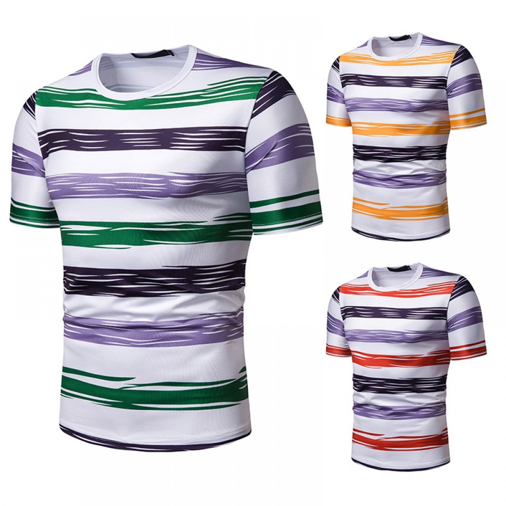 New Summer Men's Short-Sleeved T-Shirt Mens Contrast Striped Slim Casual T-Shirt