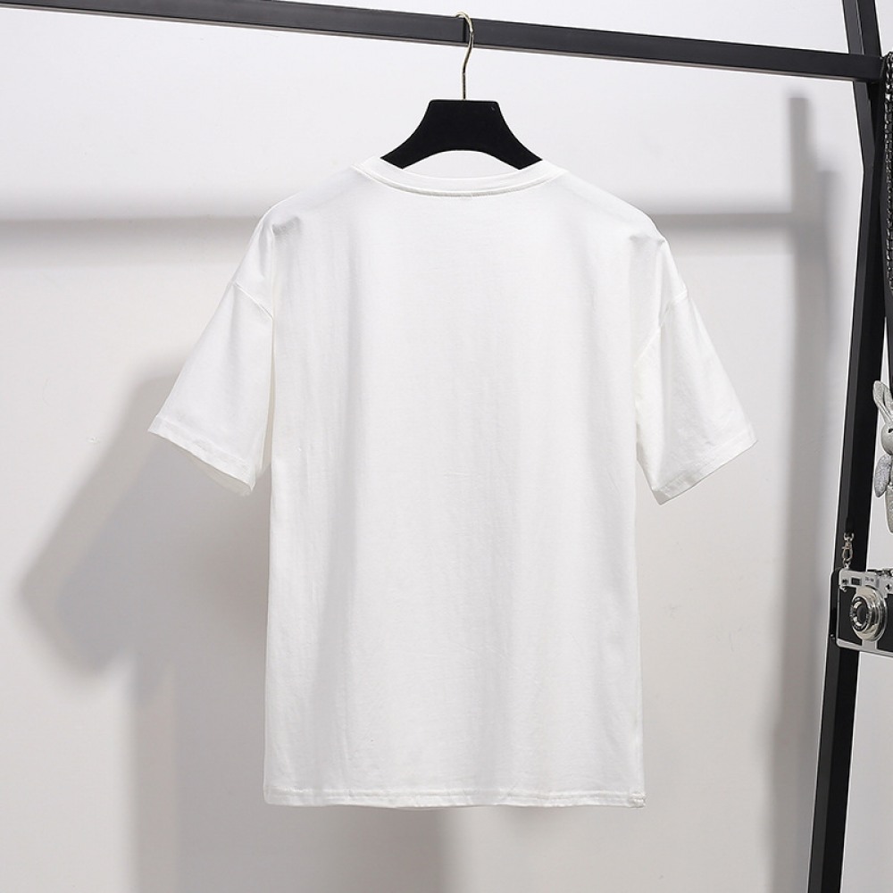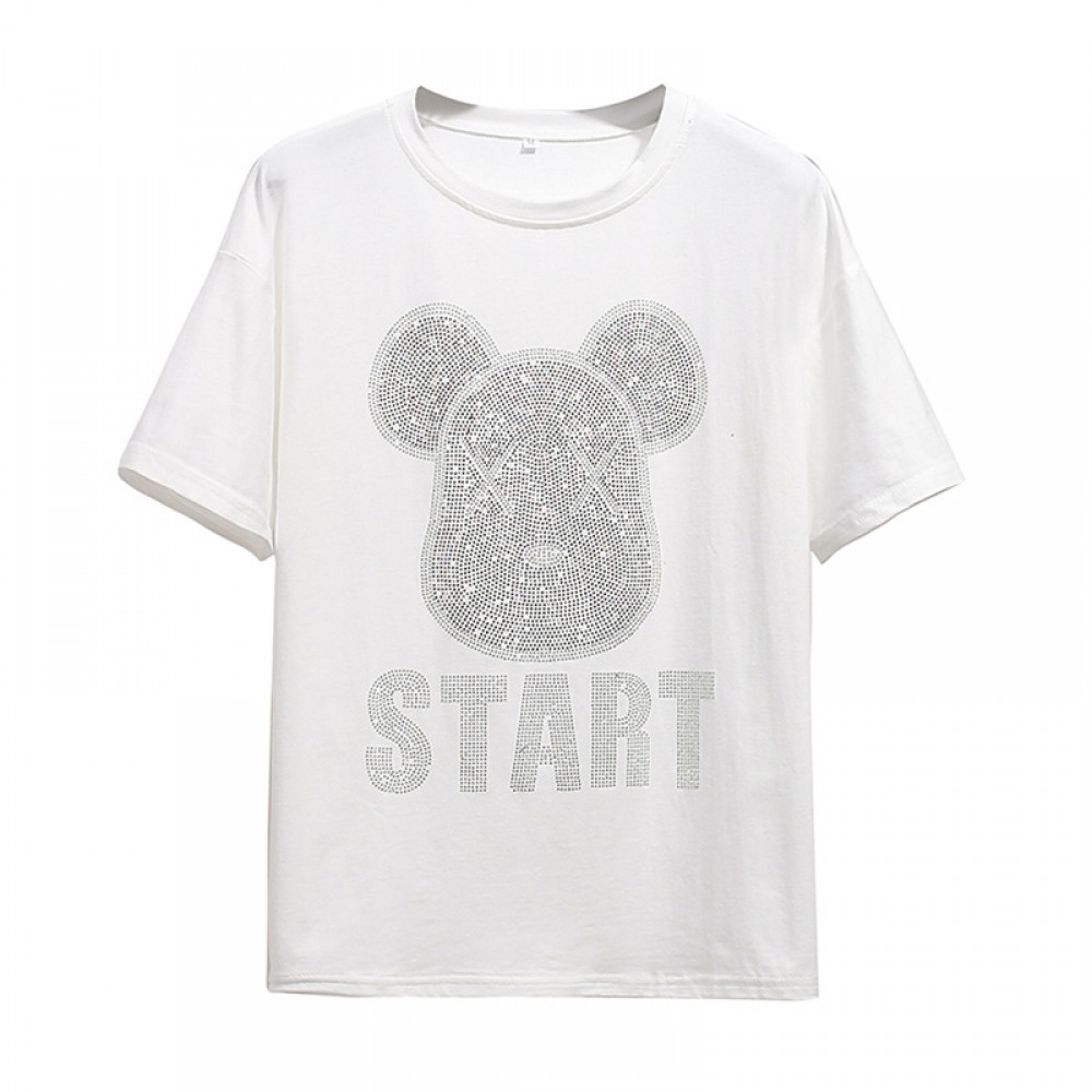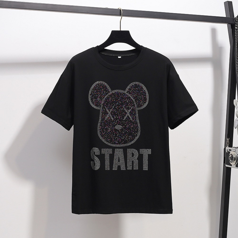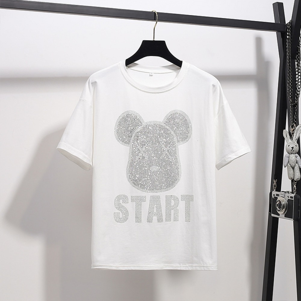 New Women's Fat Plus Size Loose Hot Drilling Short Sleeve T-Shirt for Women