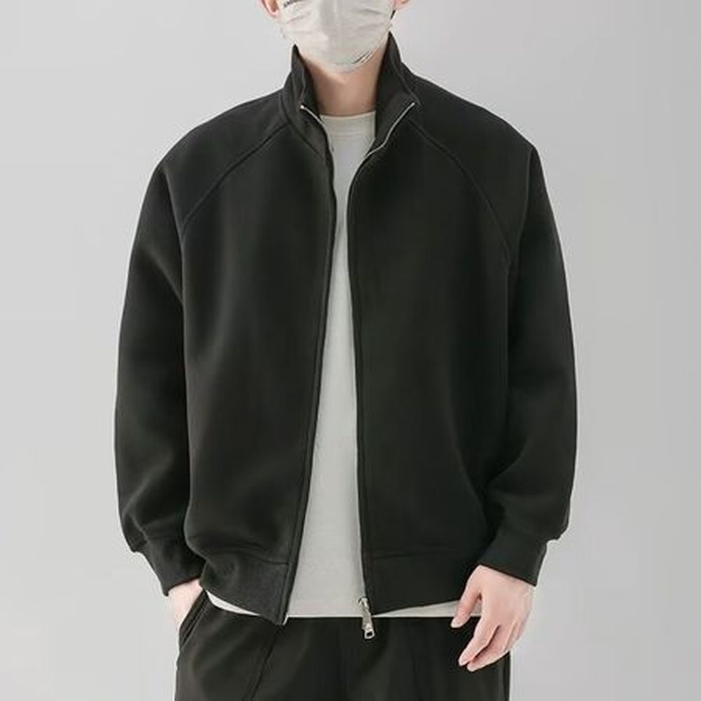Solid Color Stand Collar Sweatshirt Men's Casual Loose Jacket