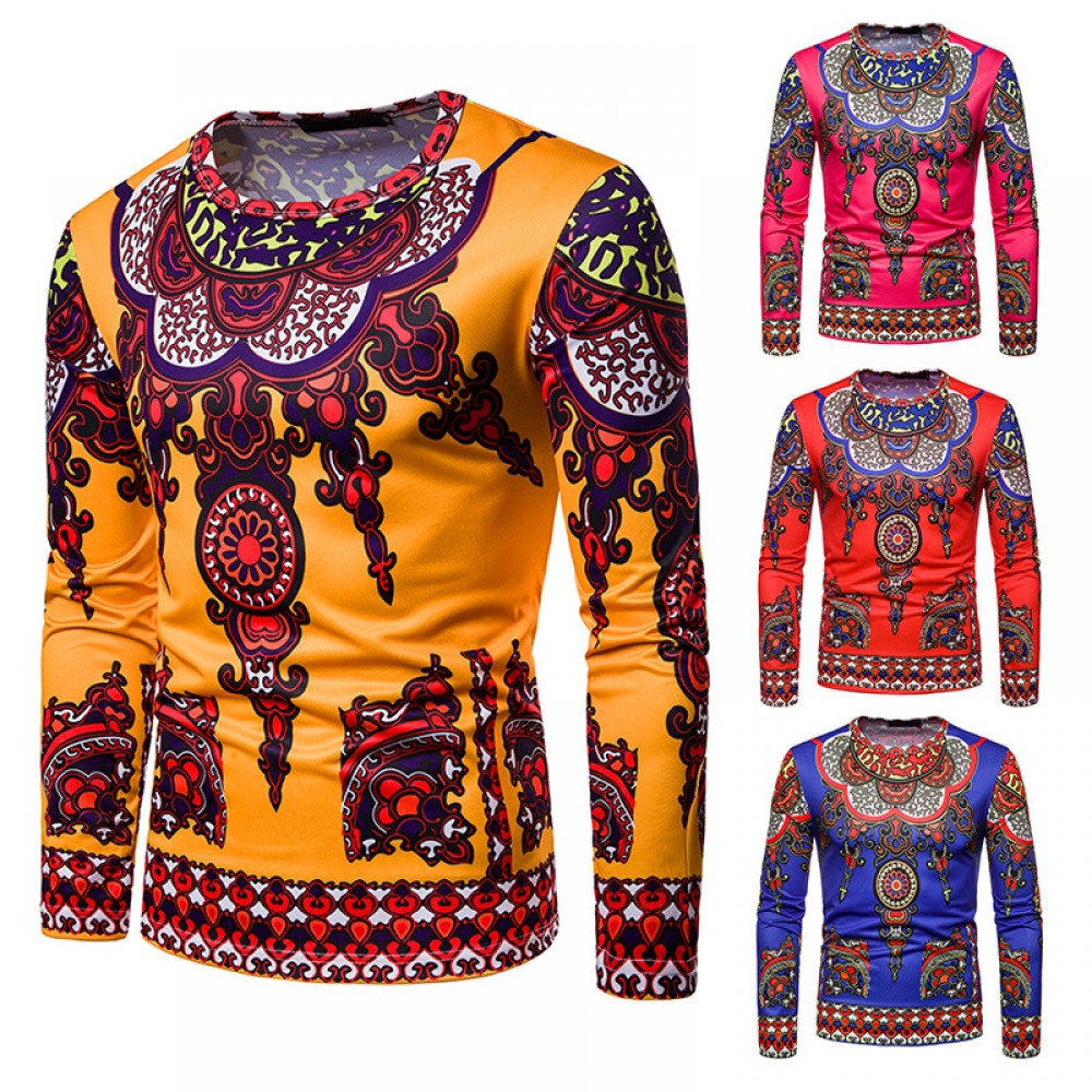 3D Ethnic Style Printing Long-Sleeved Round Neck T-Shirt