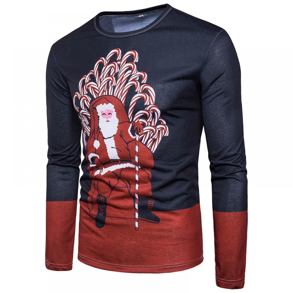 Autumn and Winter New Men's Fashion Santa Claus Hand-Held Color Stick Printing 3D Long-Sleeved T-Shirt