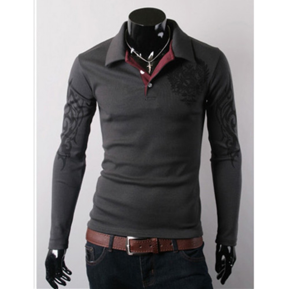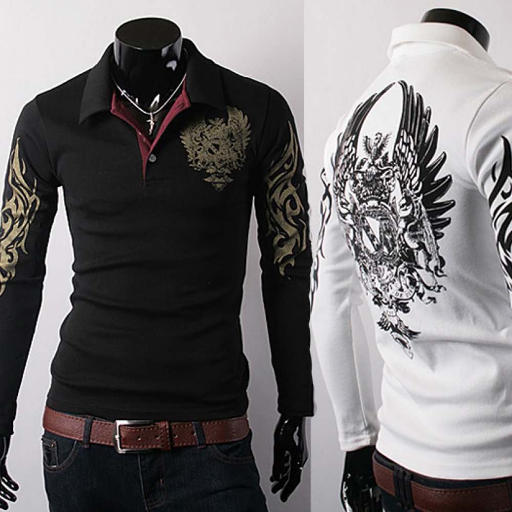 New Men's Long-Sleeved T-Shirt Lapel Big Eagle Printing Casual Men's Clothing