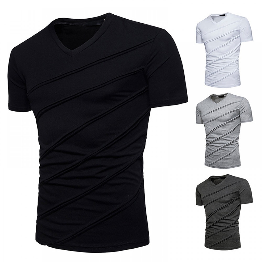 New Men's Plus Size Pleated Short-Sleeved T-Shirt