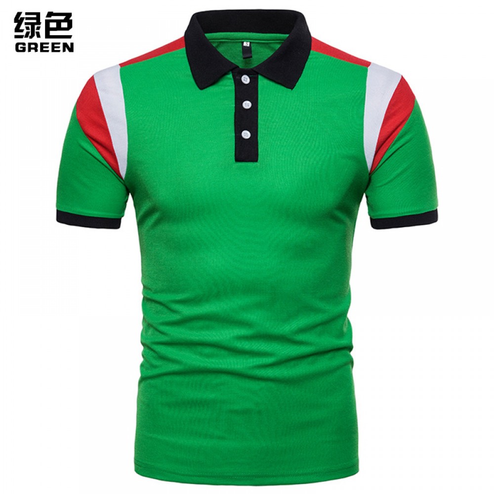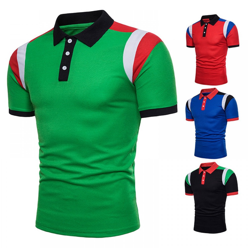 New Men's Shoulder Color Block Short Sleeve Polo