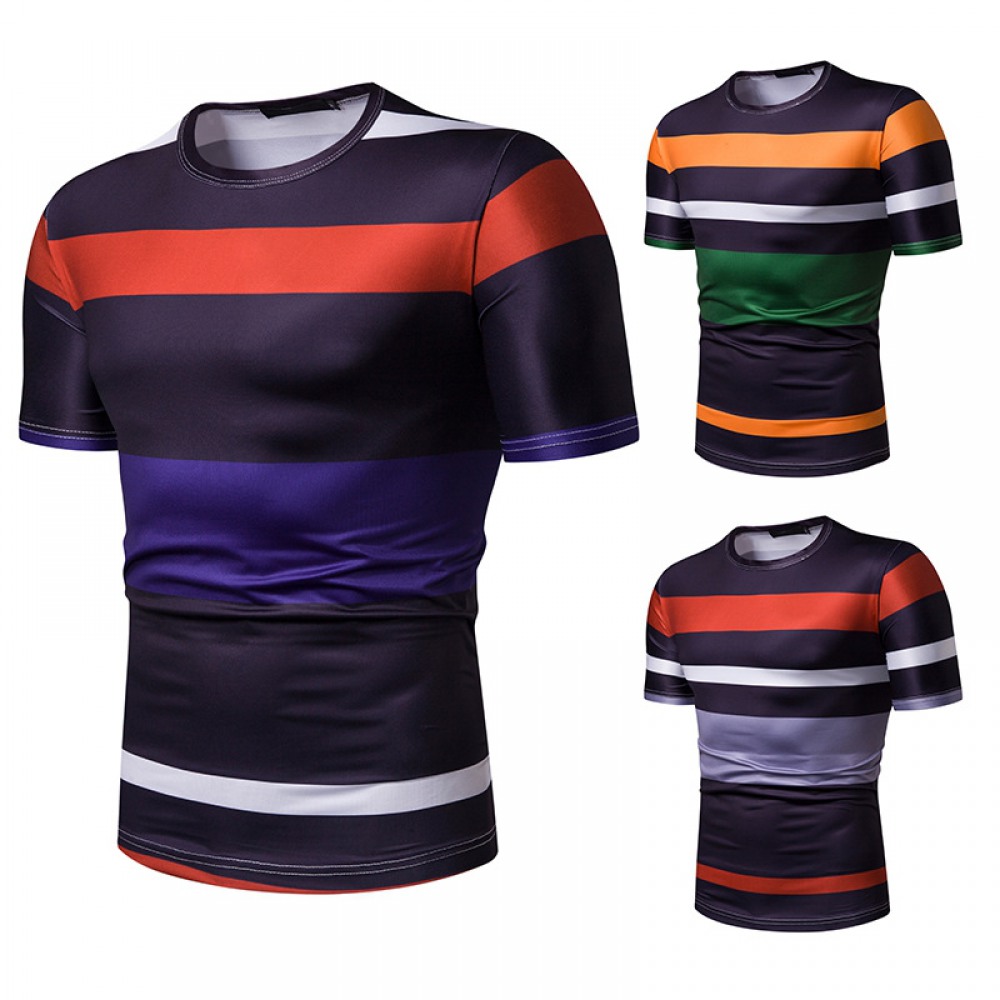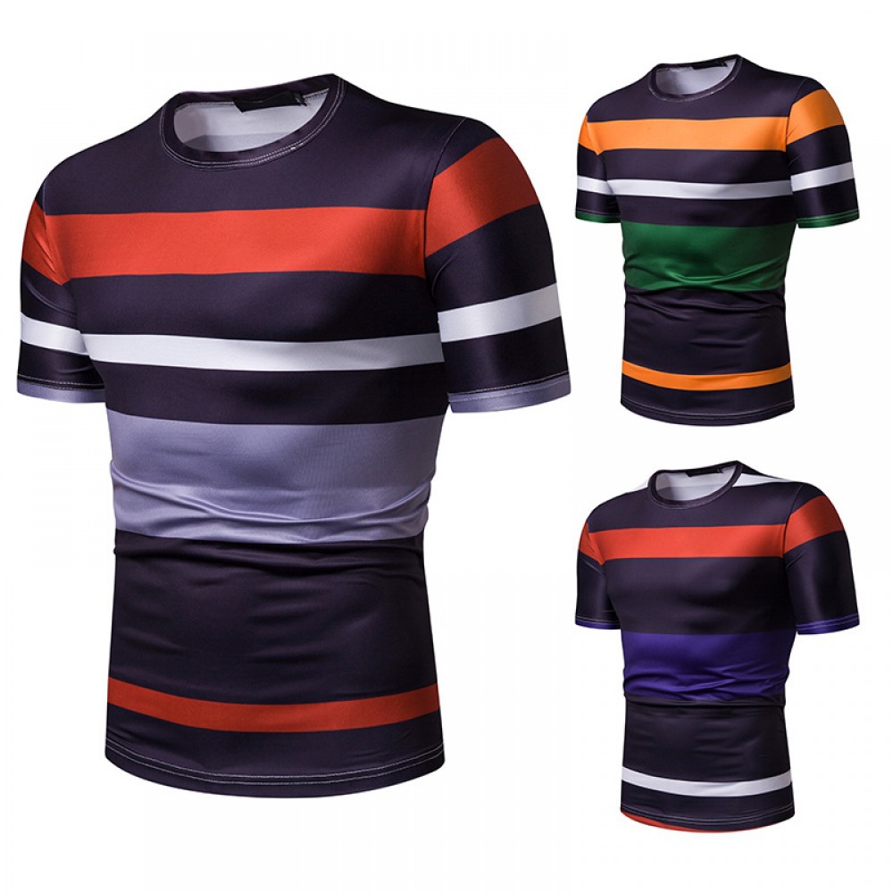 New Summer Men's Short-Sleeved T-Shirt Mens Contrast Striped Slim Casual T-Shirt