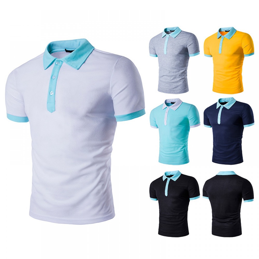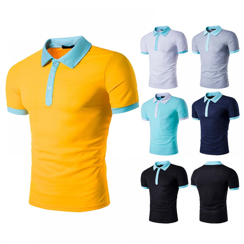 Summer New Men's Personality Hit Color Lapel Short-Sleeved T-Shirt