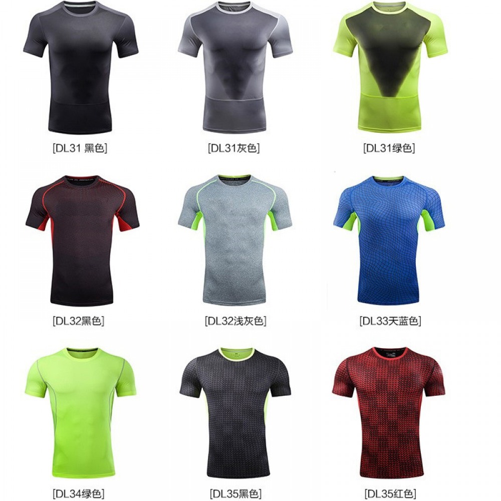 Summer Sports Short-Sleeved T-Shirt Stitching Contrast Color Casual Quick-Drying Clothes Round Neck