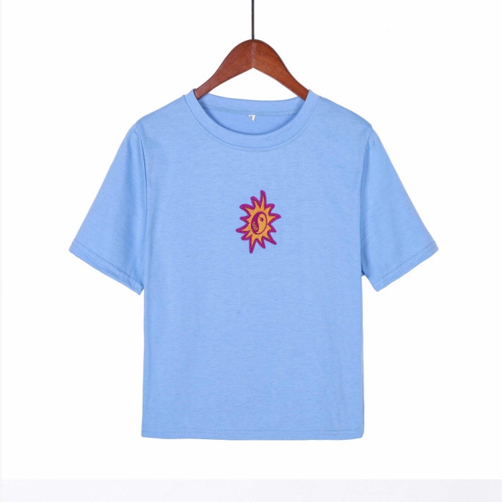 V-Neck Pineapple Embroidery Short Long-Sleeved T-Shirt